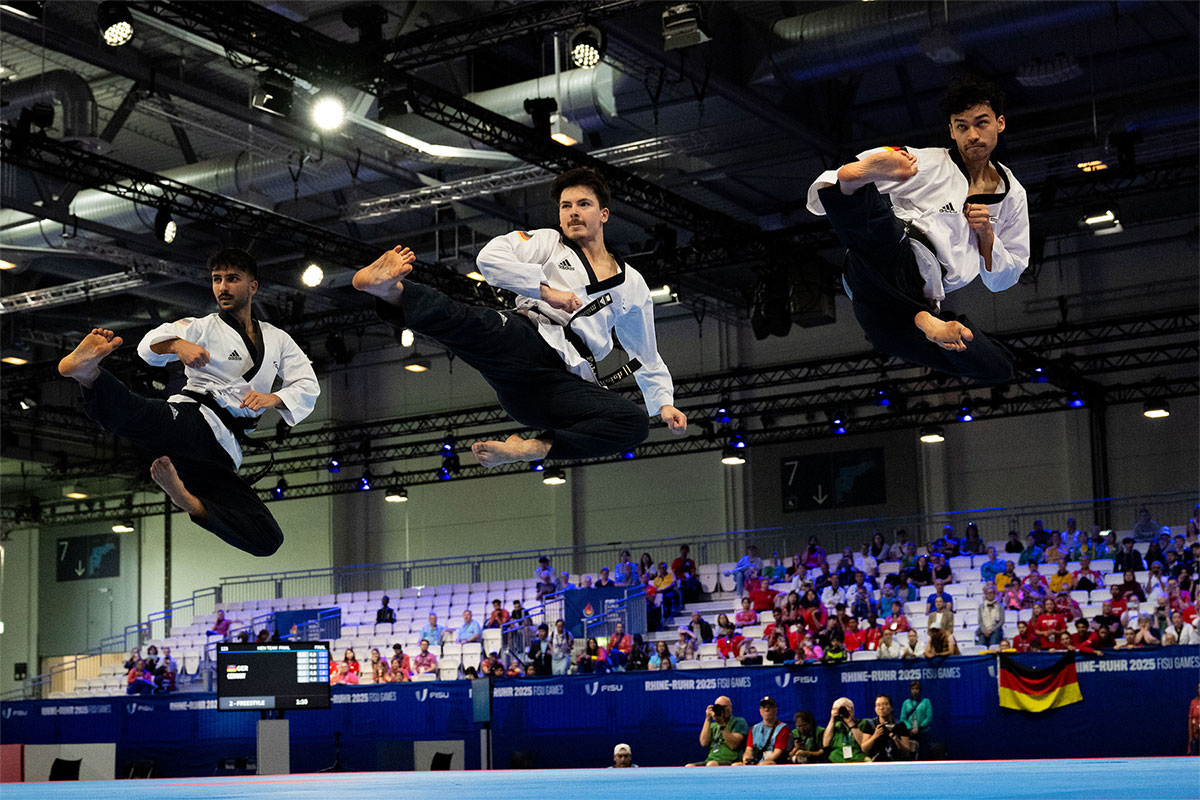 Am 16. bis 27. Juli 2025 fanden im Rhein-Ruhr-Gebiet die FISU World University Games statt. Mit dabei war unser TVSH-Landestrainer Poomsae Ken-Levan Jordt (FH Kiel), der für Team Deutschland an den Start ging. Gemeinsam mit Fabian Reich (TU Berlin) und Emir Can Erdemir (LMU München) bildete er das Herrenteam Poomsae …